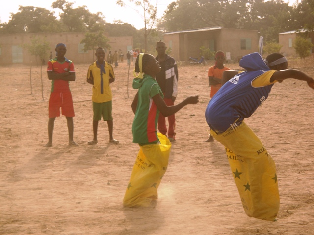 Mais au Burkina, une fête c’est aussi de bons repas. Nous offrons donc à nos enfants ce qu’ils n’ont pas chez eux : une orange, un yaourt, du poisson et beaucoup de riz et de spaghetti.